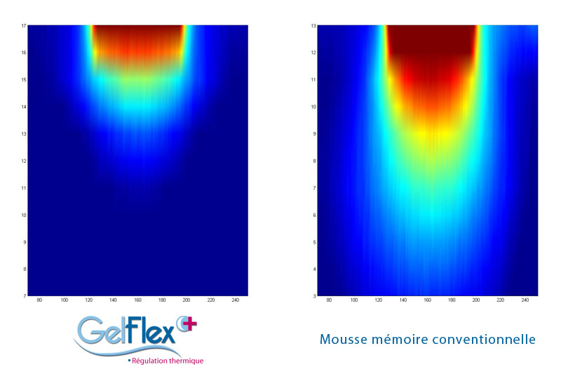 Les propriétés de régulation de température ultra performante de la mousse mémoire GelFlex Plus sont uniques sur le marché. Elles assurent une température de sommeil confortable comparativement à la mousse mémoire conventionnelle qui est souvent trop chaude.
